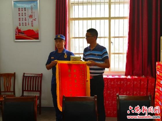 2020年7月31日下午,在新安中学行政楼二楼会议室,为支援裕安区抗洪抢险驻扎在新安中学的河南省郑州市消防救援支队副支队长李隆、作战训练处副处长李光明、特勤三战指导员高原,陇海西路消防站站长张奇,周口市消防救援支队抗洪抢险突击队队长晋松奇等分别代表两市的消防救援官兵向新安中学家庭遇到洪涝灾害的困难学生捐款、捐物。