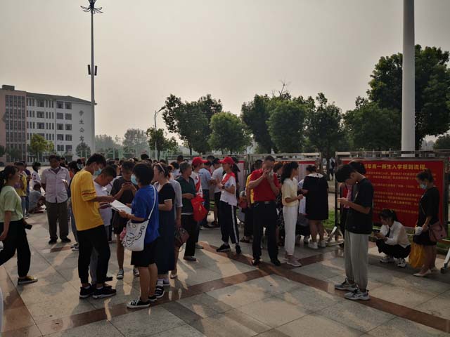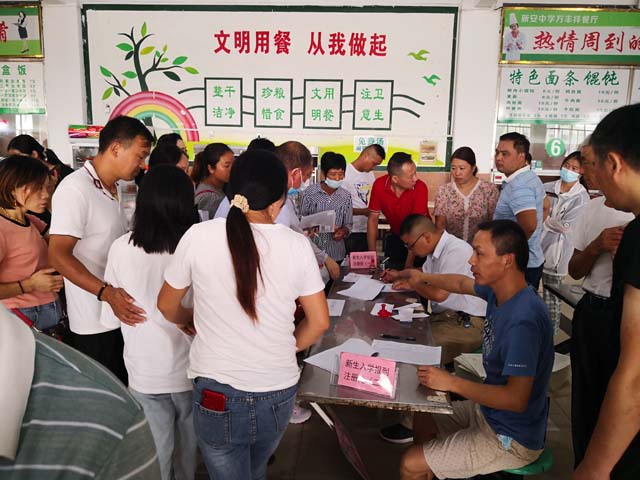 根据上级教育主管部门关于疫情防控工作要求,新生分时段到校报名,9月1日为裕安区农村各初中毕业生报名,分上、下午进行;9月2日为六安市区及周边学校、金安区初中毕业生报名,分上、下午进行。新生报名一律从学校南大门进入校园,学校在南大门学生入口通道设置了红外电子测温仪,并收取新生14天身体健康情况与体温测量登记表。