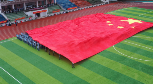 今年是新中国成立71周年,1500名高一新生组成花式方阵,手戴红、白两色手套,通过动作和颜色的变化,组成“中国 加油”等字样,变换方阵造型,最后,大家共同托举一面巨型五星红旗致敬祖国,壮观的场面将此次汇演推向了高潮,更激发了全体学生的爱国情和报国志。