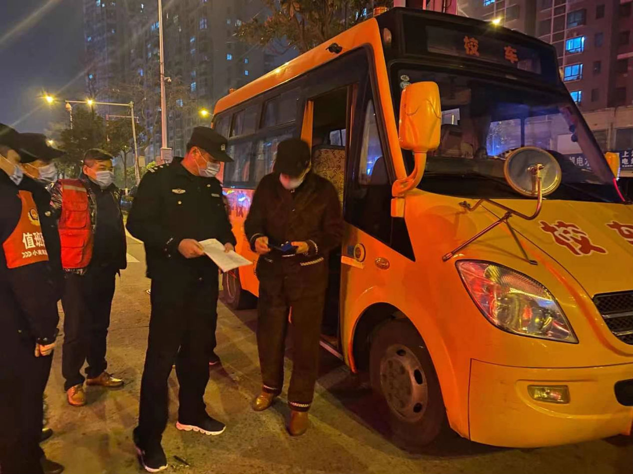 在六安二中校长关世宏、小南海派出所副所长卞勇、前进社区书记杨永江的带领下,小南海派出所干警对各社会校车驾驶员相关证件进行认真核对、检查;专项行动工作人员发放并详细填写乘坐人员信息登记表,宣传社会校车管理的相关规定,同时对驾驶员开展疫情防控教育,要求车辆每天按疫情防控要求进行消毒,所有乘坐人员上车测温,全程必须佩戴口罩,做好记录,有异常情况必须及时报告;提醒雨雪冰冻天气,注意安全行驶,确保所有乘坐学生的安全。