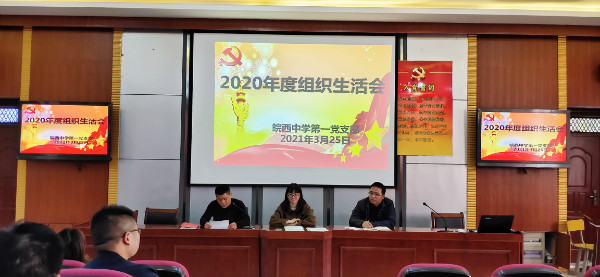 根据六安二中党委统一部署和要求,结合皖西中学党总支的安排和支部工作计划,2021年3月25日下午,皖西中学第一党支部在学校党员活动室召开2020年度组织生活会暨党史学习教育动员部署会。党总支宣传委员杨曼同志出席此次会议,活动由支部书记纪静主持,第一党支部全体党员参加。