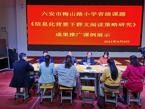 纤云不染,东风送暖。为检验和推广省级课题《信息化背景下群文阅读策略研究》所取得的研究成果,增进与兄弟学校之间的课题研究交流。4月8日,六安市梅山路小学举办了省级课题成果推广课例展示活动。会议由课题组成员杨阳老师主持。金安区电教馆馆长阮正双,皖西日报社科室主任袁远,特级教师正高级教师王先如,清水河学校教科室主任正高级教师王涛莅临参会。同时参会的有六安市城区各小学、三十铺镇第一小学、椿树镇中心小学的语文老师代表共八十余人。