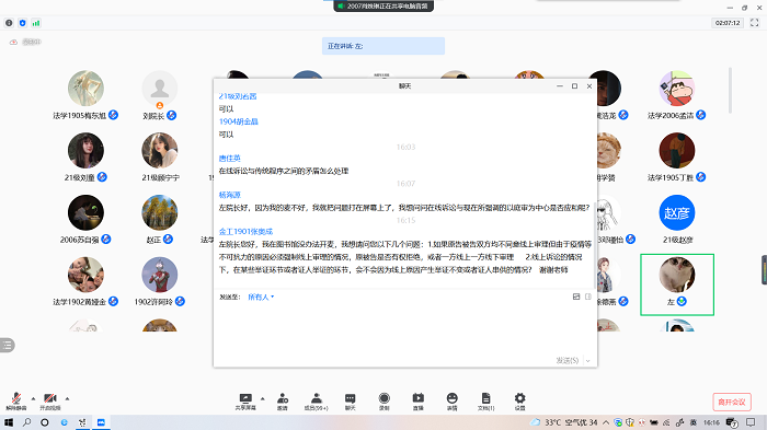 两场报告,内容丰富,数据翔实,理论与实践结合,给师生带来了一场宏大的学术盛宴和精神盛宴。左卫民教授谈吐幽默风趣,分享的信息丰富多彩,分析的视角高瞻远瞩,其渊博的知识和深厚的法学素养令人折服。报告结束后,左卫民教授在线与师生亲切互动,两次报告不仅开阔了师生们的学术视野,更让即将入学的法学院新生们对于深入法学学习与研究更加憧憬与期待。(文/刘凡 图/张贤益 审核/刘鑫)