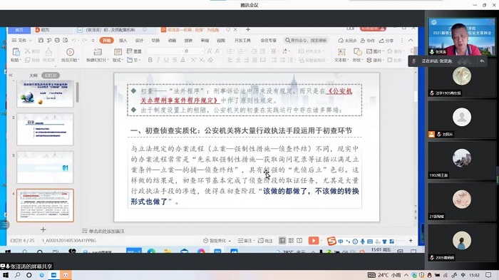 在报告中,张泽涛首先分析了初查程序的运行现状。他指出,一直以来,在公安机关的刑事司法实践中,初查就是刑事立案的前置环节。由于刑事诉讼法规定的刑事立案标准较为严苛等原因,实践中初查已经变相替代了侦查,公安机关的行政执法手段大量渗透到初查环节,从而在初查阶段就基本完成了侦查阶段的取证任务。由此引发诸多弊端,首先,初查侦查实质化,公安机关将大量行政执法手段运用于初查环节。张泽涛用自身调研的案例和数据来说明与立法规定的办案流程不同,现实中的办案流程具有较强的“先侦后立”色彩。初查环节基本完成了侦查阶段的取证任务,这使得实践中的初查已经侦查实质化了。其次,侵犯侦查阶段犯罪嫌疑人的辩护权等诸多诉讼权利。犯罪嫌疑人的合法权益无法得到保证,不得被迫自证其罪的权利和财产权也面临极大的挑战。第三,虚置非法证据排除规则。张泽涛通过大量的法律检索获知在实践中绝大部分初查取证没有载入侦查卷宗,辩护方无法知悉初查阶段是否存在非法取证行为,从而无法提出排除非法证据的申请。第四,检察机关无法对初查进行有效、充分的监督。这种带有侦查性质的初查行为事实上架空了刑事诉讼法关于立案后方可开展侦查的规定,因而规避了刑诉法及相关解释之于侦查行为的严格程序限定及检察机关对此所进行的监督。第五,初查为公安机关“不破不立”提供了规避渠道,导致破案率、犯罪率等数据失真,也易滋生“该立不立”“不该立而立”等弊端。