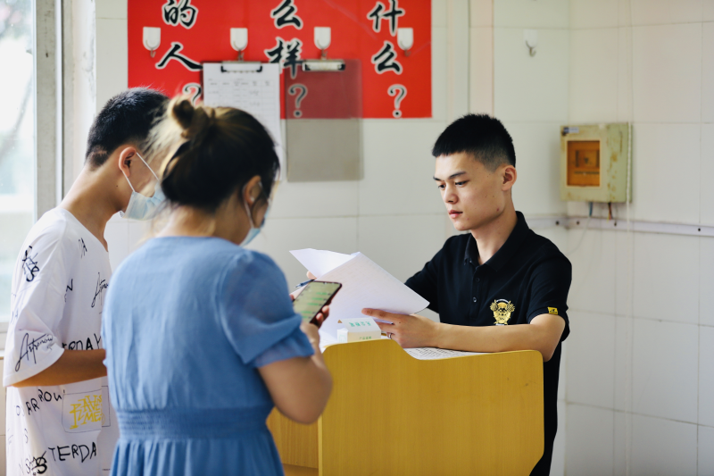 疫情防控不放松,安全有序入学来。根据防疫要求,该校安排部分教师和保安,在入镇卡口和校园正门迎接新生,同时对学生信息进行确认并要求每位新生和陪同人员扫取安康码核验,显示绿码方可通行。