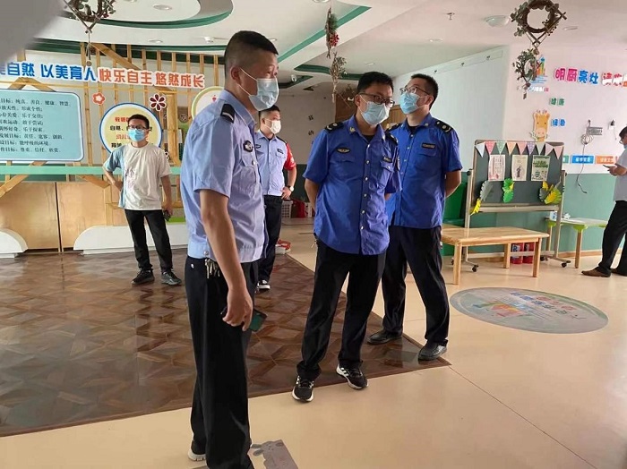 为全面深入了解幼儿园新学期开学工作情况,确保幼儿园各项工作有力有序推进,2021年9月1日下午,由中市街道九墩塘社区卫群书记协卫健、市场监管、交警等部门对金安区紫御府幼儿园的疫情防控及开学工作作全方位督导。