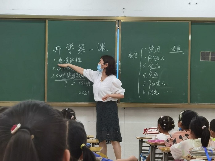 全校以班级为单位积极开展了疫情防控安全教育第一课,认真组织对学生进行爱国主义教育,秋季传染病防控教育、生命教育、防欺凌教育、心理健康教育、良好行为习惯教育,引导学生树立正确的世界观、人生观和价值观。班级安全教育主题“校园安全伴我行”,“安全在心间”等各种主题在黑板上呈现。