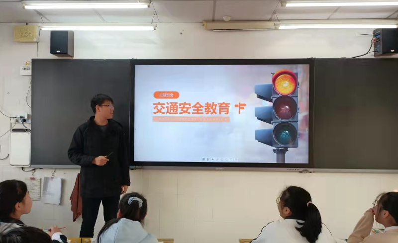 高二(12)班班会课上,班主任汪鸣好向同学们讲了一些交通安全知识,通过展示图片、播放视频等方式,让学生知道如何遵守交通规则,如何在生活中注意交通安全,并告诫学生要在生活中要注意防范交通安全事故的发生。
