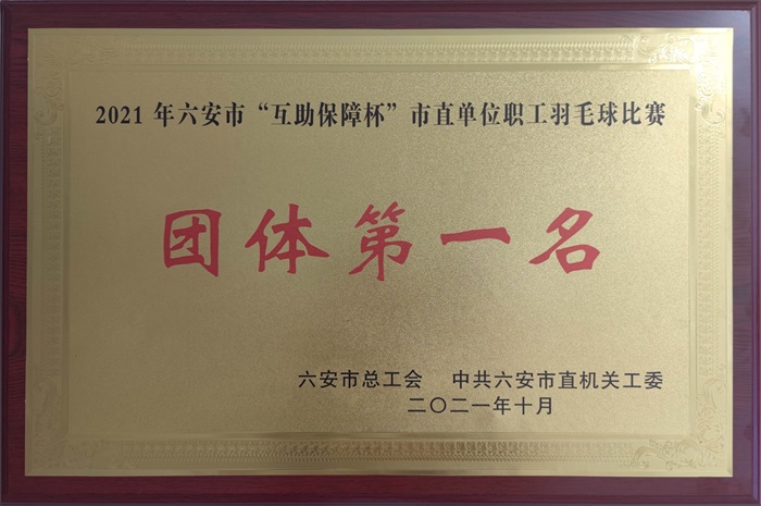 喜报——六安二中荣获2021年“互助保障杯”市直单位职工羽毛球比赛团体第一名