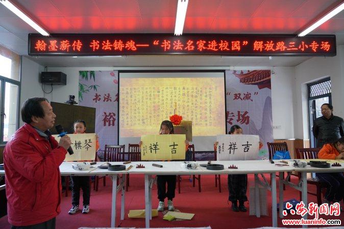 翰墨飘香,丹青溢彩。书法是中华民族的文化瑰宝, 有着悠久的历史,被称为:无言的诗,无形的舞,无图的画,无声的乐。为传承中华文化、弘扬民族精神,落实“双减”政策,丰富校园文化生活,引导师生感受汉字和书法的魅力,12月2日,由六安市裕安区教体局局主办,安徽翰达文化科技有限公司,安徽灏翰苑文化艺术传播有限公司协办的“书法名家进校园”活动在六安市解放路第三小学举行。本次活动邀请了7名书画专家及青少年实践专家为师生传授书法技艺,送来了一场书法艺术的饕餮大餐。