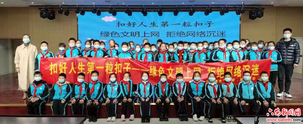 为切实加强广大学生的网络文明教育,提高学生的网络文明素养,促进学生身心健康成长,六安市清水河学校(第二小学)于12月21日下午开展了“扣好人生第一粒扣子——绿色文明上网 拒绝网络沉迷”主题教育活动。四年级少先队员代表120余人参加。