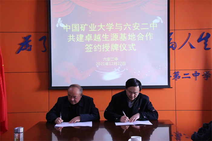 会上,中国矿业大学与六安二中举行了“卓越生源基地”签约授牌仪式。