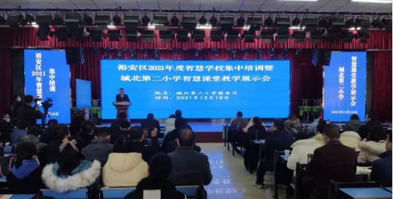 12月19日上午,裕安区2021年度智慧学校集中培训暨城北二小智慧课堂教学展示会在六安市城北第二小学报告厅隆重举行。区教体局领导、全区城镇和乡村智慧学校校长、骨干教师及部分市直学校的老师,共180多人参与了本次活动。