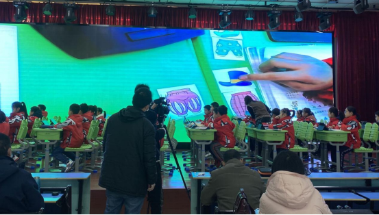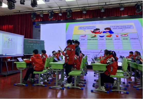 智慧课堂学校应用成果展示环节,城北第二小学江海云老师带来一节特别的数学公开课——《搭配中的学问》,城北第二小学王成玉老师带来的是一节英语对话课——《Unit 5 Dinner's ready! A Let's talk》。两位老师教学基本功扎实,操作娴熟,将学科特点深度融合到智慧课堂当中,实现了教学内容直观化、教学手段多元化、教学理念现代化。授课中,两位老师通过随机、抢答等互动方式,活跃课堂气氛;通过全班拍照作答形式,让学生的答案都清晰呈现在大屏上,并选取典型答案进行讲解,帮助同学们直观理解知识点,灵活的教学方式,让课堂变得丰富有趣,学生学得高效轻松。