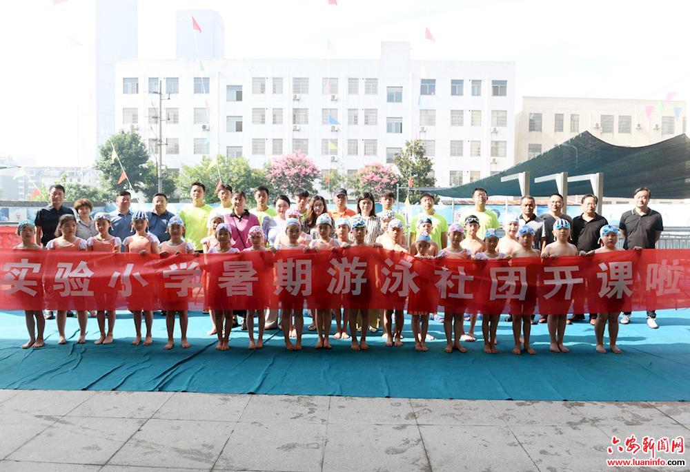 7月5日上午8时许,实验小学游泳馆正式开课,校党总支书记、校长孔令仓带领学校领导班子和三年级全体教育组长参加了开课仪式。简短的开课仪式后,学生们在专职教练的带领下进行科学训练。上课时,同学们以很快地速度换好泳衣,戴好泳帽。排着整齐的队伍站在游泳池边,认真地听教练们讲解游泳动作要领,目不转睛地盯着教练的示范动作,并主动参与动作的模拟练习。