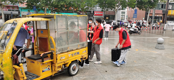 由学生会成员组成的50余人的新时代文明实践志愿服务队现场为学生提供形式多种的志愿服务。活动中,志愿者分工明确、有条不紊、热情洋溢地迎接返校学生。有的,有的帮助同学背起行囊、扛运行李……