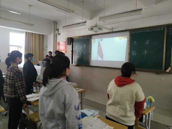 受新冠疫情影响,本次升旗仪式采取在各班教室使用多媒体广播播音的方式。上午十时,在高三(11)班班主任杨本清老师的主持下,全体高三同学集体起立,在国歌声中观看班级多媒体播放的升旗仪式,行注目礼,庄严的氛围点燃了同学们强烈的爱国热情。