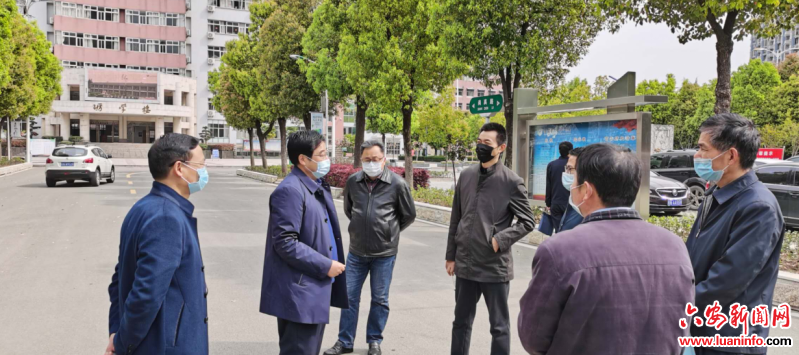 4月5日上午, 由金安区教育局、卫健委、市场监管局、城管局、公安分局、经信局、交通运输局和三里桥街道组成的联合督查验收组来到我校,全面核查六安一中高三年级学生返校准备工作。