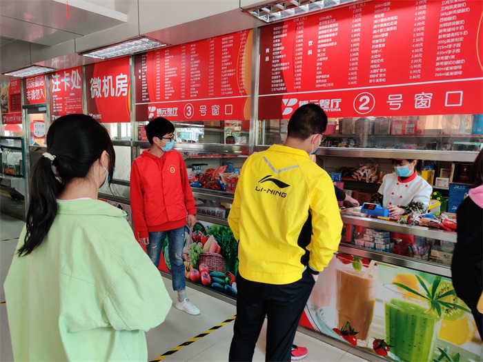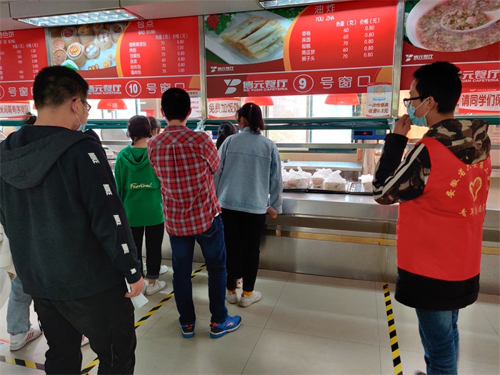 高一年级各团支部积极响应,纷纷招募志愿者到学校食堂为就餐同学开展志愿服务活动,志愿者们在食堂提醒就餐同学餐前洗手,排队保持距离,不喧哗吵闹,单人单桌、文明有序用餐,减少交叉感染风险。