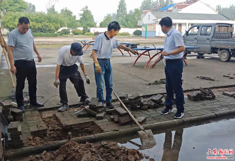 5月14日,一场暴雨过后,舒城县孔集小学校园主干道积水严重,给师生通行带来极大不便。