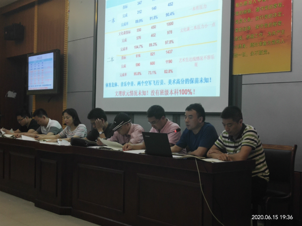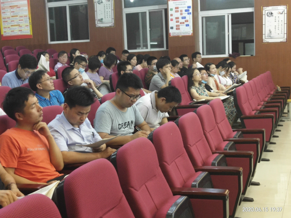 2020年6月15日晚,皖西中学高三年级部在阶梯教室二楼召开“合肥三模”成绩分析会暨最后20天冲刺阶段工作布置会,全体高三教师参加会议,会议由马健部长主持,高三年级部分管校长杨曼提出具体要求,副校长胡昊作建议发言,校长王建安莅临指导并作总结强调。