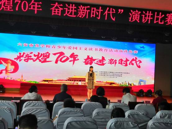本次活动的主题是“辉煌七十年 奋进新时代”。六安二中两位参赛选手精神饱满,声情并茂,歌颂了中华人民共和国七十年所取得的辉煌成就和发生的巨大变化,展现出新时代青年在成长道路上爱党爱国的时代精神风貌,表达了争做“有理想、有本领、有担当的新时代中国特色社会主义建设者”坚定信念。