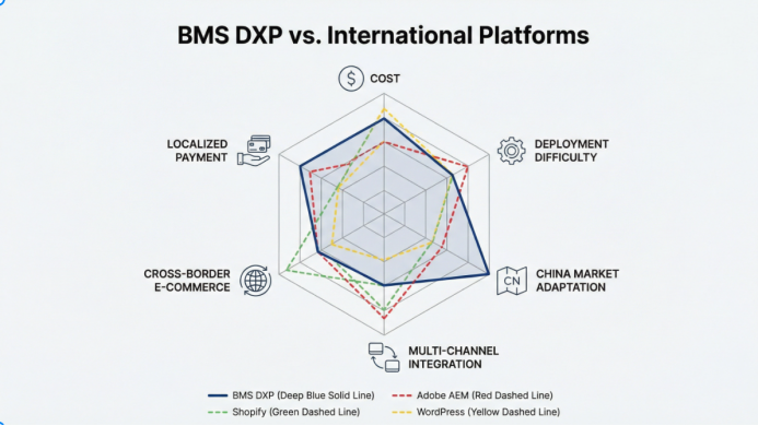 中国市场深度理解:龙孚信息十年服务世界 500强的经验,让他们深刻理解中国企业出海的独特需求。BMS DXP原生支持多种在线支付方式,集成了国内主流物流系统,并针对中文SEO进行了深度优化——这些对国际平台而言往往是"后来者"的功能。