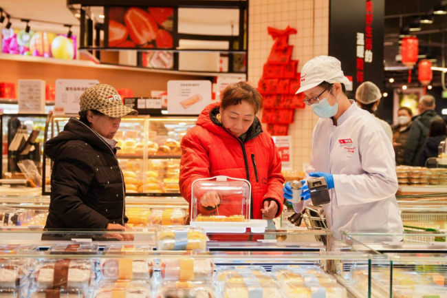华润万家天津梅江环宇城店在商品力构建上,遵循“全球优品”与“本地深耕”两大特色。在本地融合方面,深度挖掘。店内设置的天津特色专区,引入十八街麻花、耳朵眼炸糕等一批耳熟能详的中华老字号及本地美食,还有华润万家联合本地厂家定制的低盐版老火腿、真空包装熟梨糕等特色商品,让本地消费者找到熟悉的味觉记忆,让外地游客一站式体验津味。