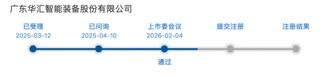 2026年2月4日,广东华汇智能装备股份有限公司(简称“华汇智能”)北交所IPO申请获得上市委会议审议通过。华汇智能IPO申请于2025年3月12日获受理,4月10日进入问询阶段。