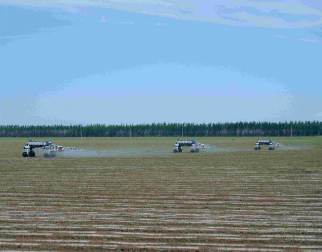 中科原动力无人作业智能农机在高标准智慧棉田开展无人化播种作业