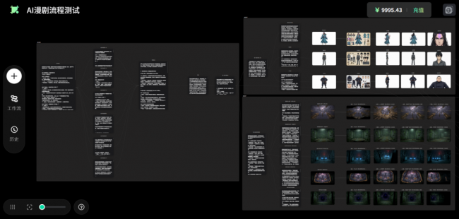 画布内集成了全球前沿的文本、图像及视频生成模型,用户可以根据不同场景的需求,在同一个工作流中灵活调用最合适的模型。无论是构建复杂的故事脚本,创作细腻的画面表达,还是设计好莱坞级别的镜头语言,“无限画布”都能让你的思维精确落地。