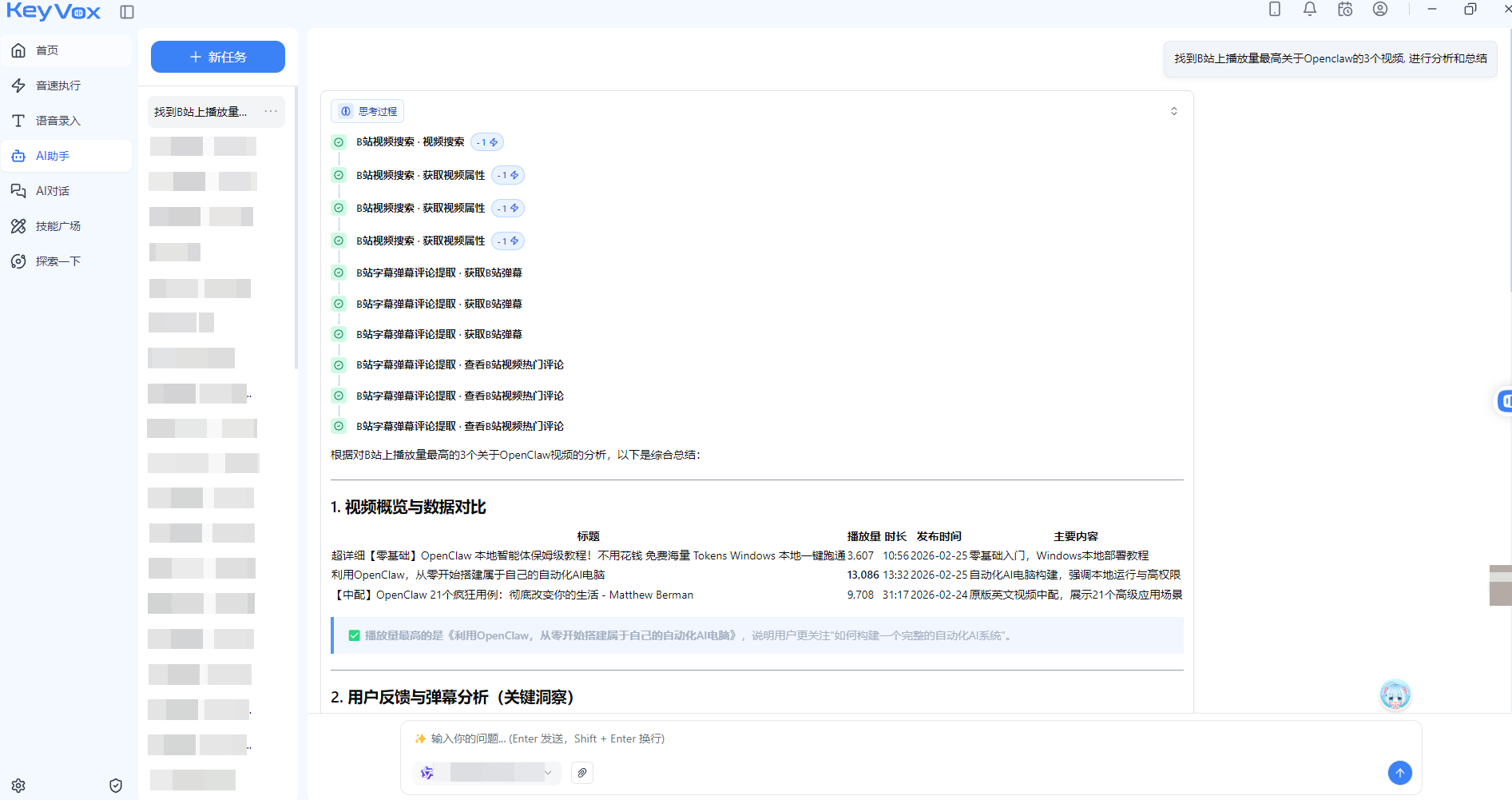 这些在OpenClaw里,你需要自己写工作流脚本、调试工具链、处理各种报错。而在Keyvox,只需要一句话。