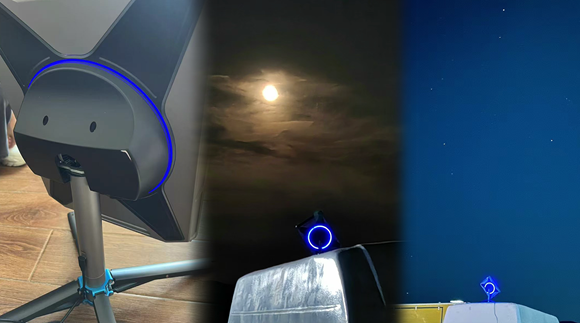 在越野车的车顶上多了一台一直亮着光圈的小设备。它静静地工作着,在烈日下,在风沙里,在一路颠簸中,始终在线。
