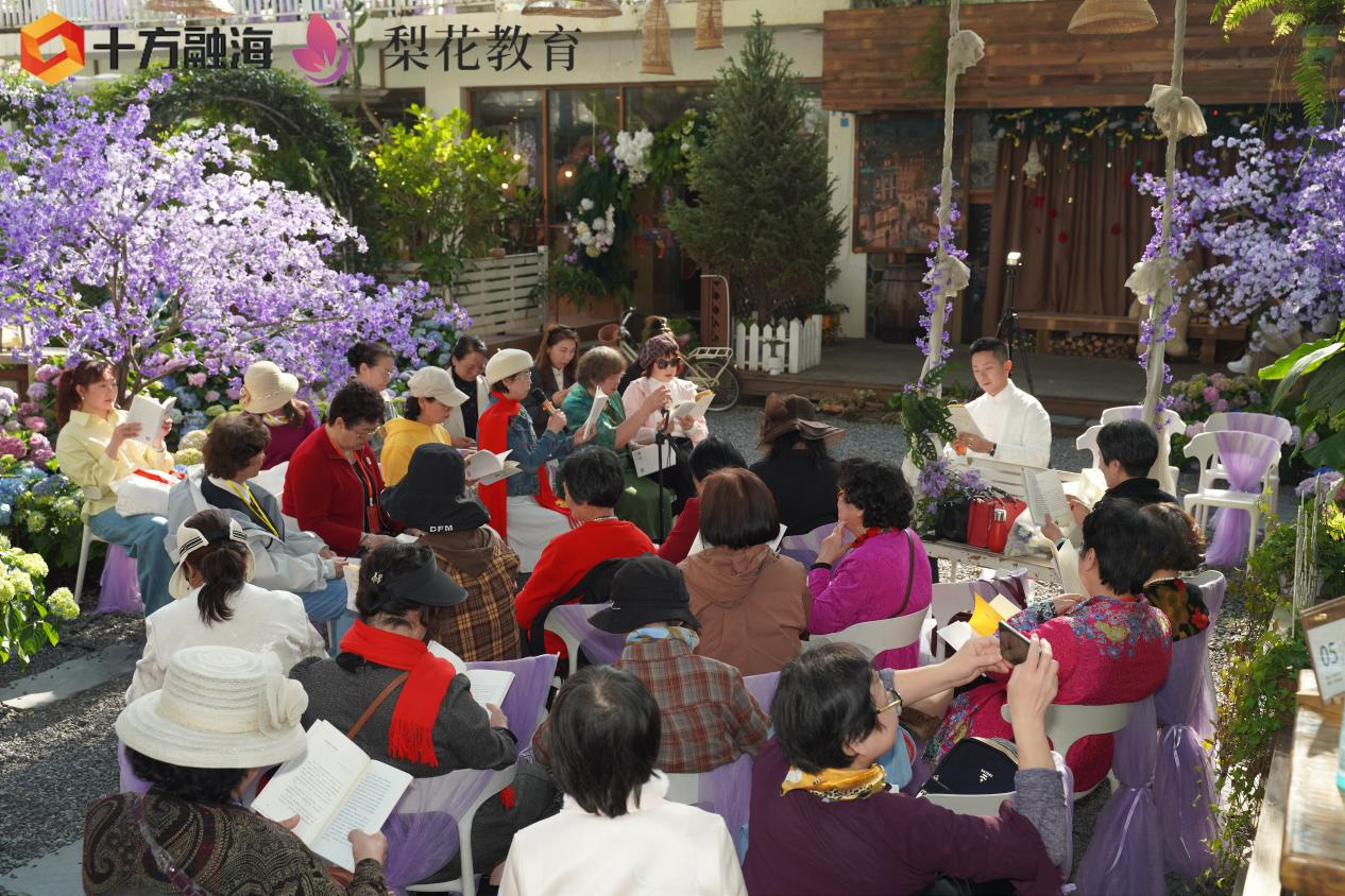 为回应长者从“看一看”到“学一学、悟一悟”的需求转变,梨花教育在“梨游学”品牌基础上,推出以声音导师宋雨为引领的“以声入心 与宋同行”主题游学。活动以朗诵艺术为切入点,通过沉浸式体验为老年群体提供“学、游、乐、养”一体化滋养,让长者在行走中学习、在交流中绽放。