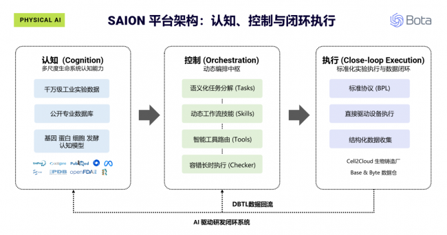通过这一架构,SAION AI 将科研认知、智能决策与物理实验执行深度融合,全方位构建面向生物制造的AI驱动闭环系统。