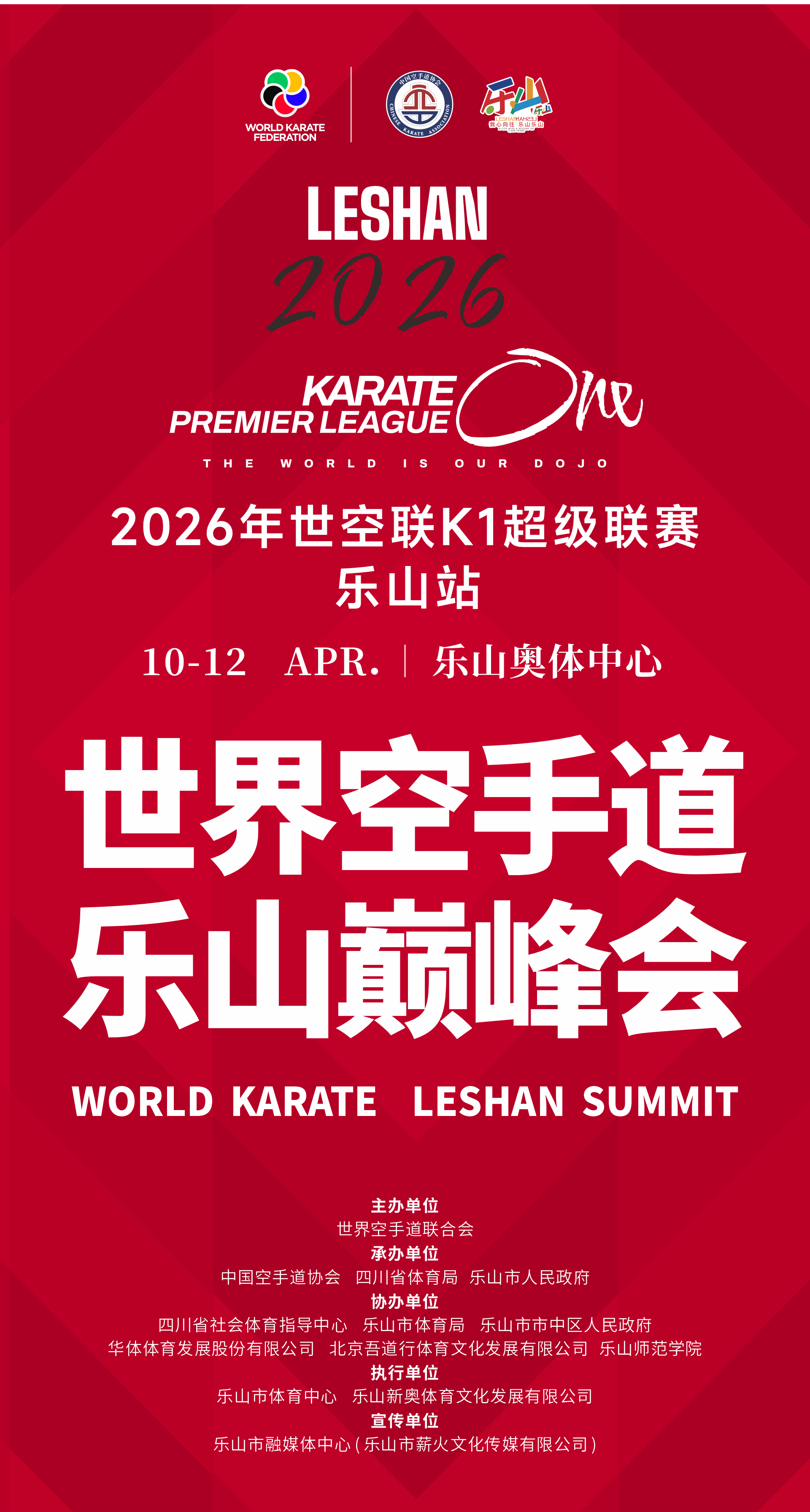 4月10-12日,世界空手道巅峰对决将在乐山奥体中心打响,世界空手道乐山巅峰会同步启幕。这场国际级空手道盛宴,让我们相聚乐山,见证力量与技巧的碰撞!
