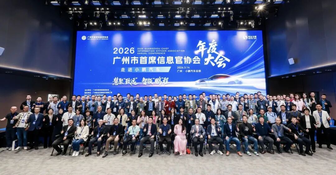 2026 年 3 月 14 日,以 “慧聚致远 智领鹏程” 为主题的2026 广州市首席信息官协会年度大会在广州小鹏汽车全球总部圆满举办。本次大会汇聚 500 + 位来自制造、快消、生物医药、金融、零售等多行业的企业总裁、CIO 及 IT 核心负责人,联动 20 家国内外优秀科技厂商,围绕数字化转型、AI 技术落地、数智人才培养等核心议题深度探讨,搭建起技术交流、资源对接、经验共享的行业高端平台。