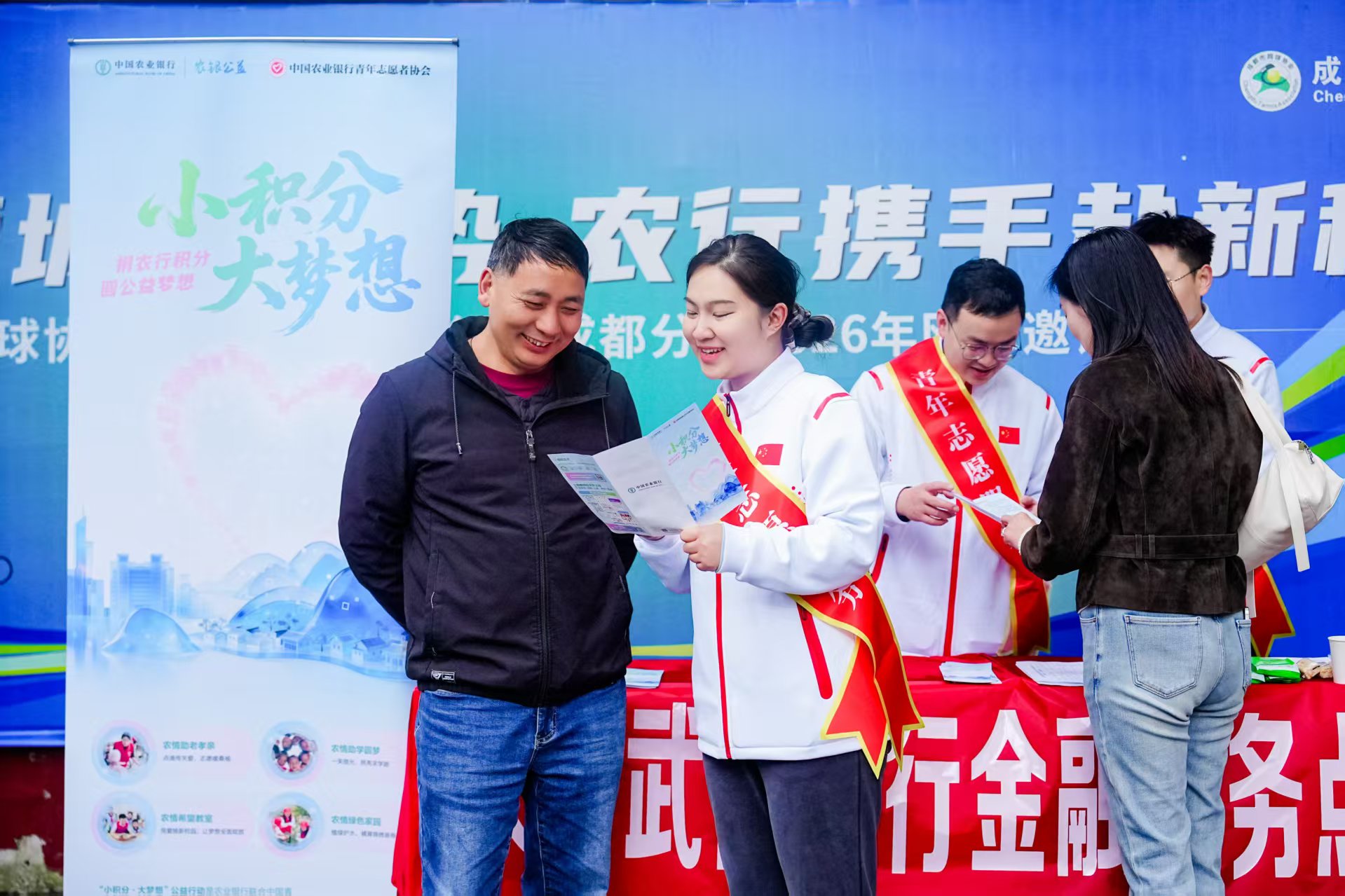 为深入践行金融为民初心,弘扬志愿服务精神,传递公益温暖力量,以3月“学雷锋志愿服务月”为契机,中国农业银行成都武侯支行开展“积分公益”青年志愿行动,通过“线上+线下”“行内+行外”双向联动模式,扎实推动“小积分,大梦想”公益项目和“小积分,大关爱”互助计划落地见效,以点滴积分汇聚爱心暖流,用青春行动彰显国有大行的责任与担当。