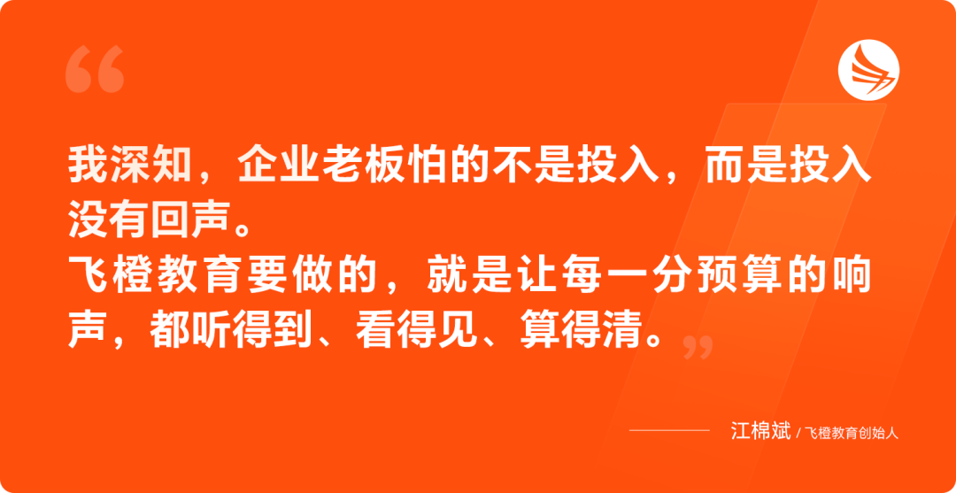 我是江棉斌,飞橙教育的创始人。过去19年,我亲眼见证并参与了中国互联网营销的每一次浪潮,也陪伴了上万家企业从0到1,再到N的增长。