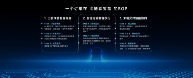 智能决策通过 AI Agent +车载屏和手麦语音的模式直达司机,SOP覆盖运输全链路,实现标准化、智能化执行: