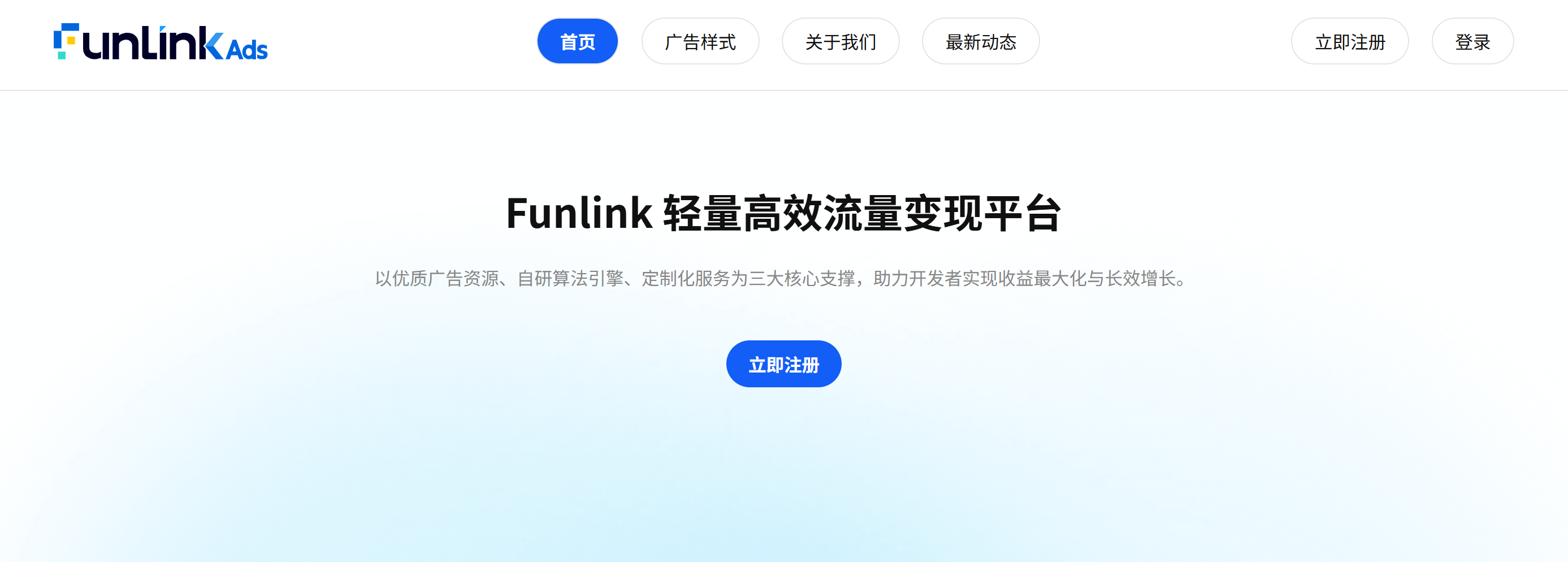 Funlink新官网焕新上线!智能变现方案,高价值流量一键兑现