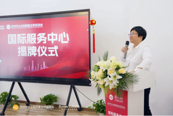 深企高质会常务会长刘欣然在揭牌仪式上表示:“我们成立国际服务中心,就是要把高质会的平台资源与贝西国际的落地能力结合起来,让会员企业出海不再孤军奋战。”