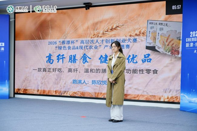 2026年3月26日,2026“蓉漂杯”高层次人才创新创业大赛——新津・绿色食品与农业科技专题赛在天府创智湾成功举办。活动以“1+N”方式开展,包含“1”场现场路演主场活动和赛前选拔赛、科技创新成果对接、产业园区“感知行”等“N”场专场活动,通过创新项目路演、产业园区推介、科创成果展示等方式,“以赛育才、以赛引才”,引导优秀人才(团队)、优质项目向重点产业领域加速聚集,推动创新链、产业链、资金链、人才链深度融合。