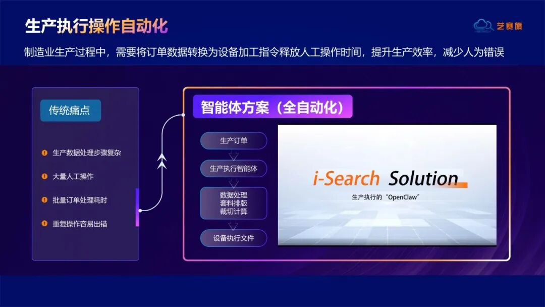 未来,艺赛旗将继续以智能体自动化为核心,持续打磨贴合行业需求的实战解决方案,深化技术与场景的融合创新,助力更多企业迈向“人机协同”的数智化新范式。