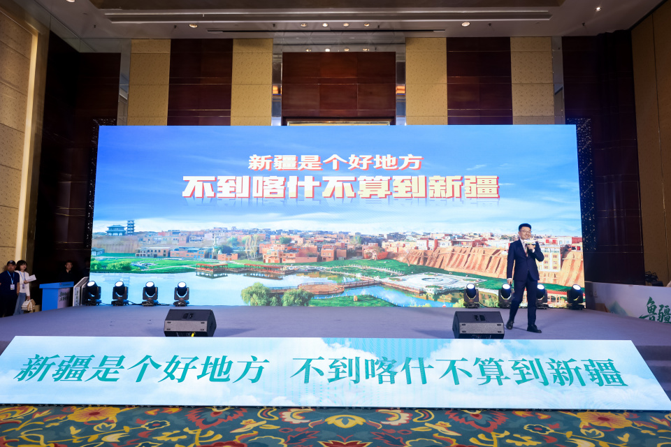 推介会在特色歌舞《我的爱献给祖国母亲》中拉开帷幕。喀什地区及疏勒县、麦盖提县、岳普湖县、英吉沙县等县市文旅代表,通过图文、视频全方位展示喀什古城、慕士塔格峰、达瓦昆沙漠、刀郎文化、非遗小刀等特色文旅资源,让嘉宾沉浸式感受丝路喀什的独特魅力。
