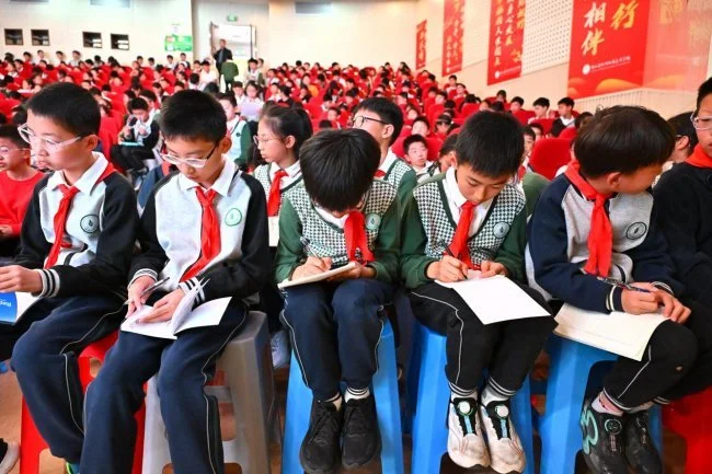 本次活动特邀书法美育百城千场公益行发起人——古文字学家、书法教育家李奕声老师主讲。讲座中,李奕声老师以深厚的书法功底与丰富的教学经验,从古文字起源、书体演变到书法执笔运笔技法,从经典碑帖赏析到书写习惯养成,层层深入为孩子们普及书法知识。他结合青少年认知特点,用生动案例拆解书法背后的文化内涵,引导学生感受汉字“形、神、意”的统一,在笔墨纸砚的交融中提升美育素养,让传统书法的魅力直抵童心。现场师生认真聆听、积极互动,不时爆发出热烈掌声,浓厚的书法氛围充盈整个校园。