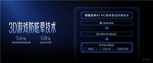 - 行业领先的3D游戏防眩晕技术,利用AI轨迹预测与自研晕动补偿算法,通过荣耀绿洲实验室测试,游戏眼部舒适度改善56%,迷失方向感改善58%,帮助更多玩家畅玩无惧眩晕;