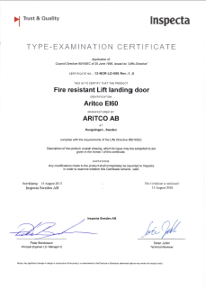 该认证由瑞典权威检测机构签发,使Aritco电梯能够满足更高等级的建筑消防规范,适用于对安全要求更高的项目环境。