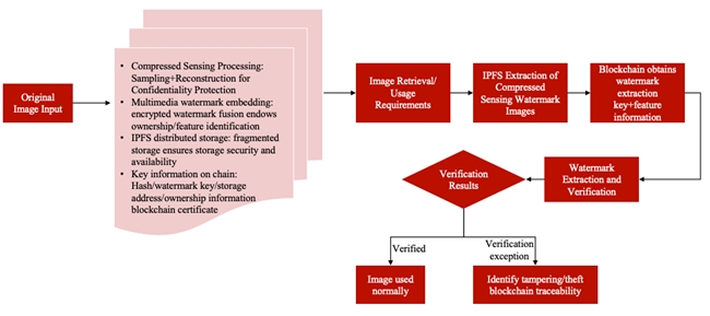 整个流程中,压缩感知、多媒体水印、IPFS与区块链技术各司其职又深度协同,压缩感知为图像提供底层保密性,多媒体水印为图像认证与完整性校验提供依据,IPFS保障图像存储的安全与可用,区块链则为全流程提供去中心化的溯源与不可篡改的记录,各技术环节形成有机整体,让压缩感知图像在整个生命周期中都能得到全方位的安全保护,同时不影响图像的正常使用与流转。