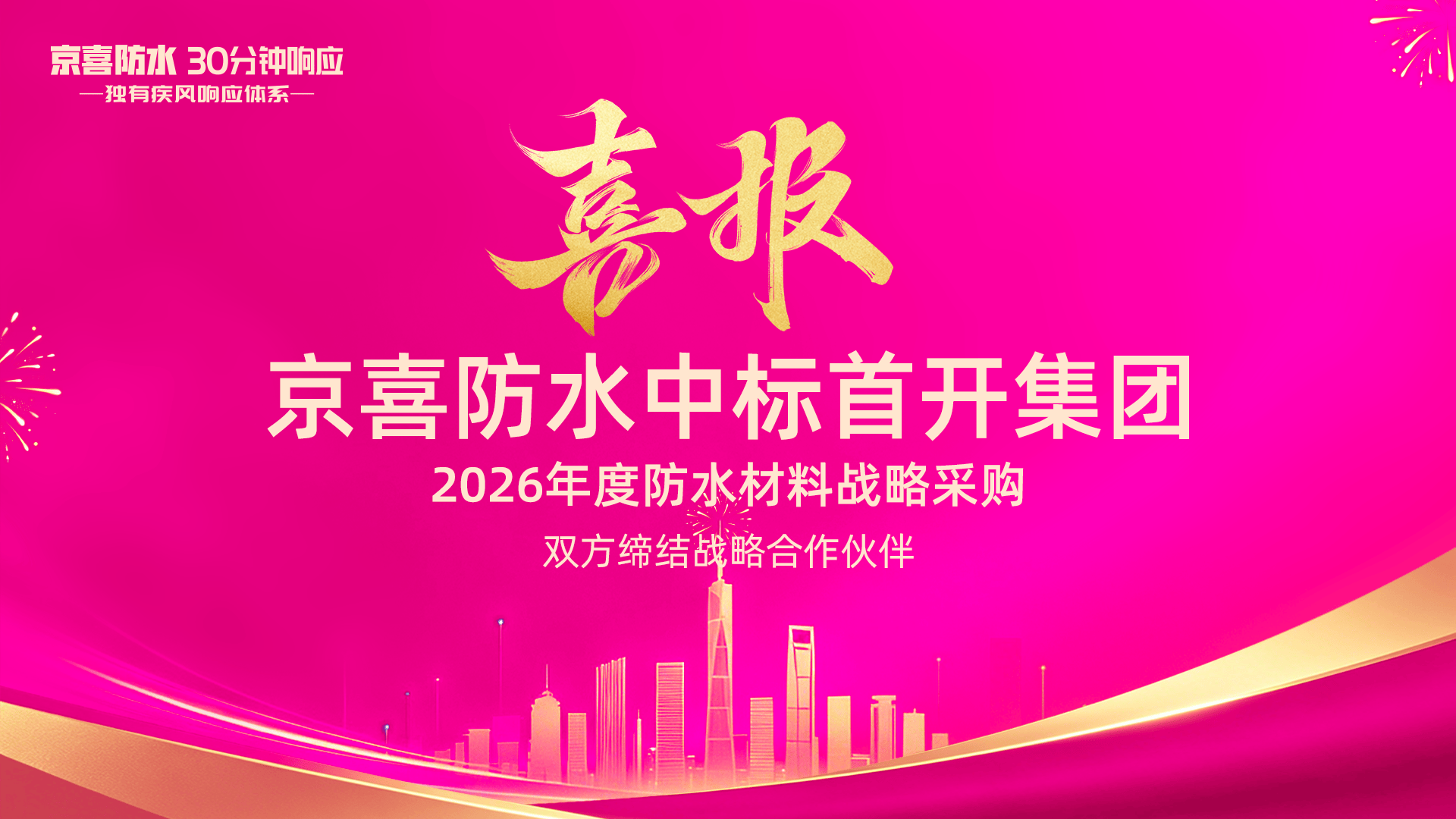 近日,京喜防水成功中标北京首都开发控股(集团)有限公司(以下简称“首开集团”)2026年年度防水材料战略采购项目,正式成为这家标杆国企的核心防水材料供应商。此次中标,既是国企对京喜防水产品实力、服务水平的高度认可,更是京喜防水践行「30分钟响应」核心品牌定位、深耕防水领域33年实力积淀的重要见证。